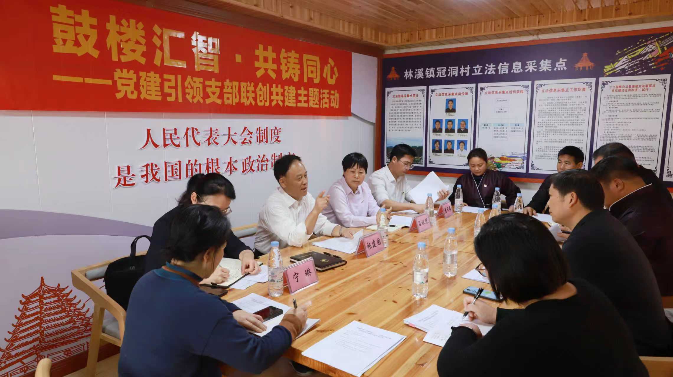 2026年4月3日,春意融融、鼓韵悠长。市人大机关第二支部联合三江侗族自治县人大机关支部、林溪镇冠洞村总支部,在全国人大常委会法工委基层立法联系点信息采集点、柳州市铸牢中华民族共同体意识示范区人大代表联系点所在地——冠洞村,举行“鼓楼汇智·共铸同心”党建引领支部联创共建工作调研座谈暨三方签约仪式活动。市人大常委会党组副书记、副主任张建国以普通党员身份参加活动,县人大常委会主任石祖芝主持座谈会议。