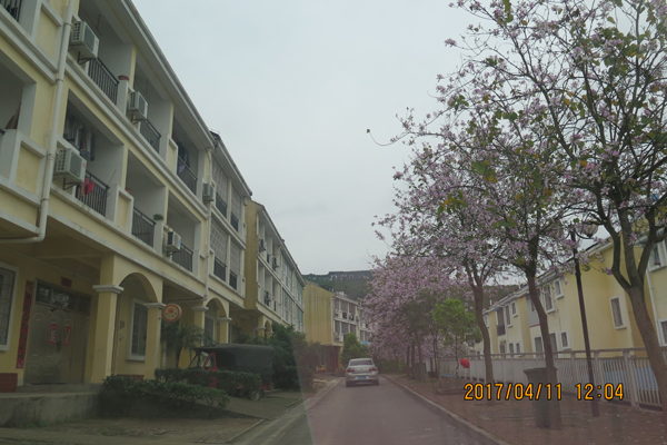 新圩村二湾屯农民整洁别墅的房屋在鲜花景观树中