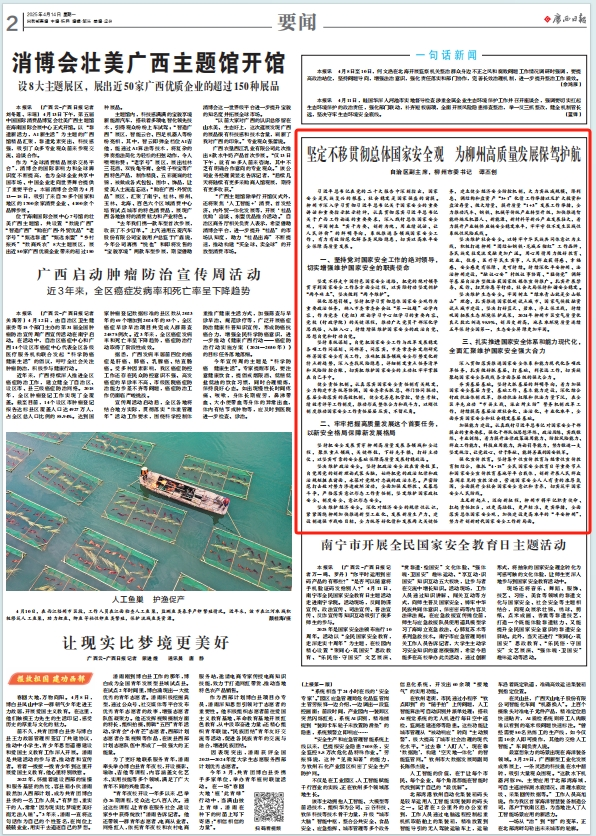 《广西日报》刊发谭丕创署名文章:坚定不移贯彻总体国家安全观为柳州高质量发展保驾护航