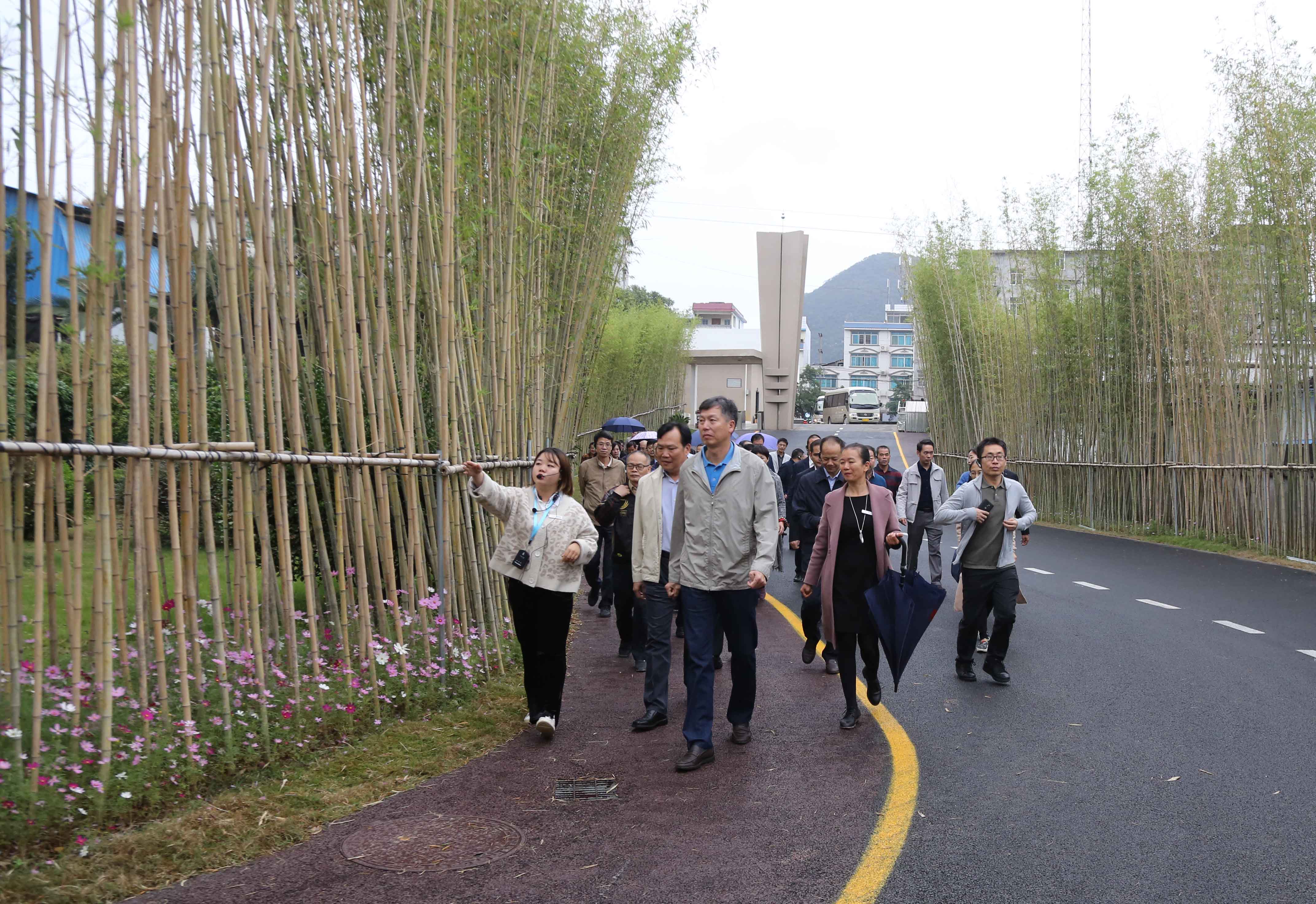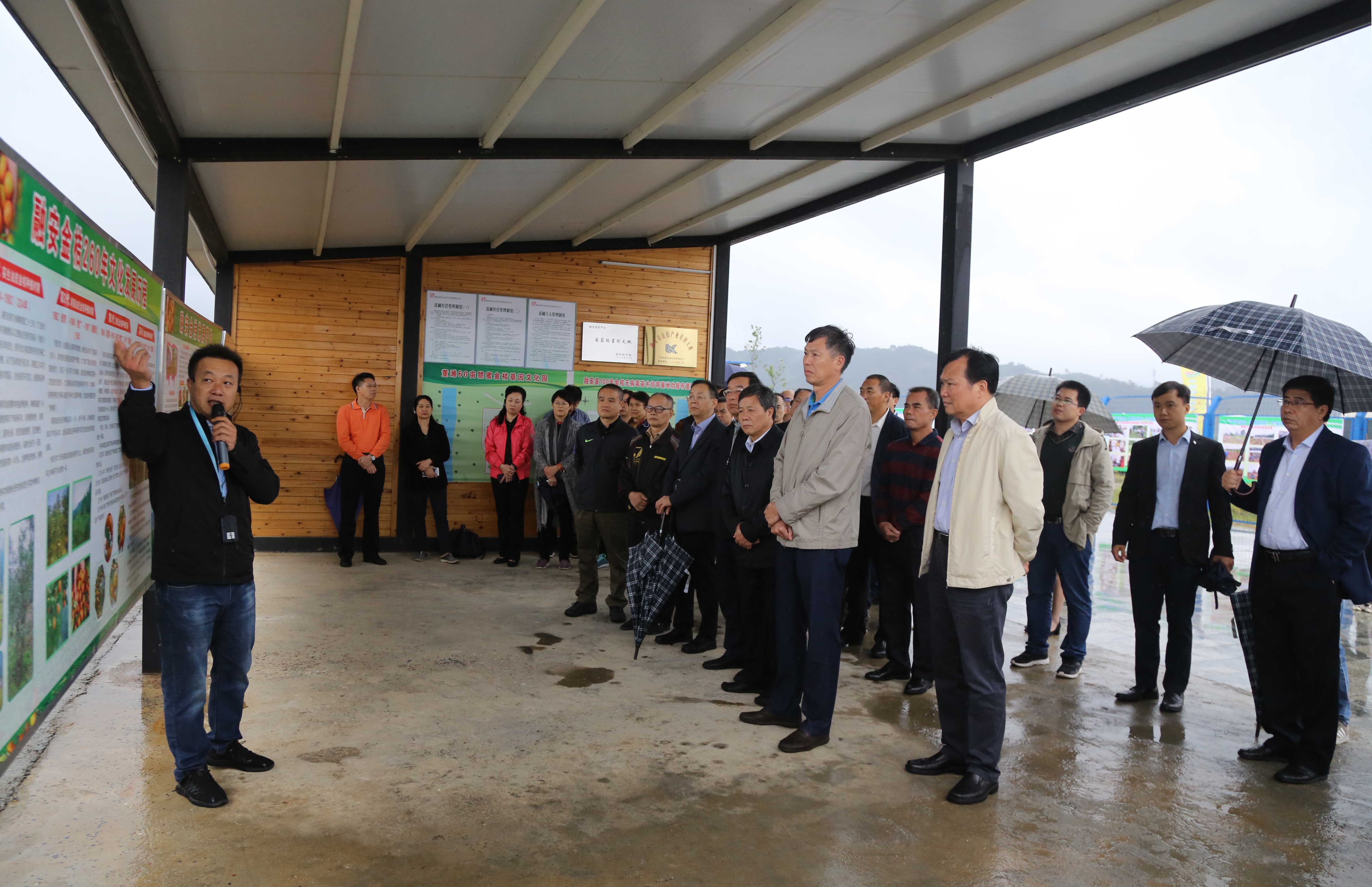 10月17日,柳州市人大常委会副主任刘传林(前中)率市、县(区)人大工作者到广西仙草堂灵芝产业园开展调研活动。(滕以洪 摄)