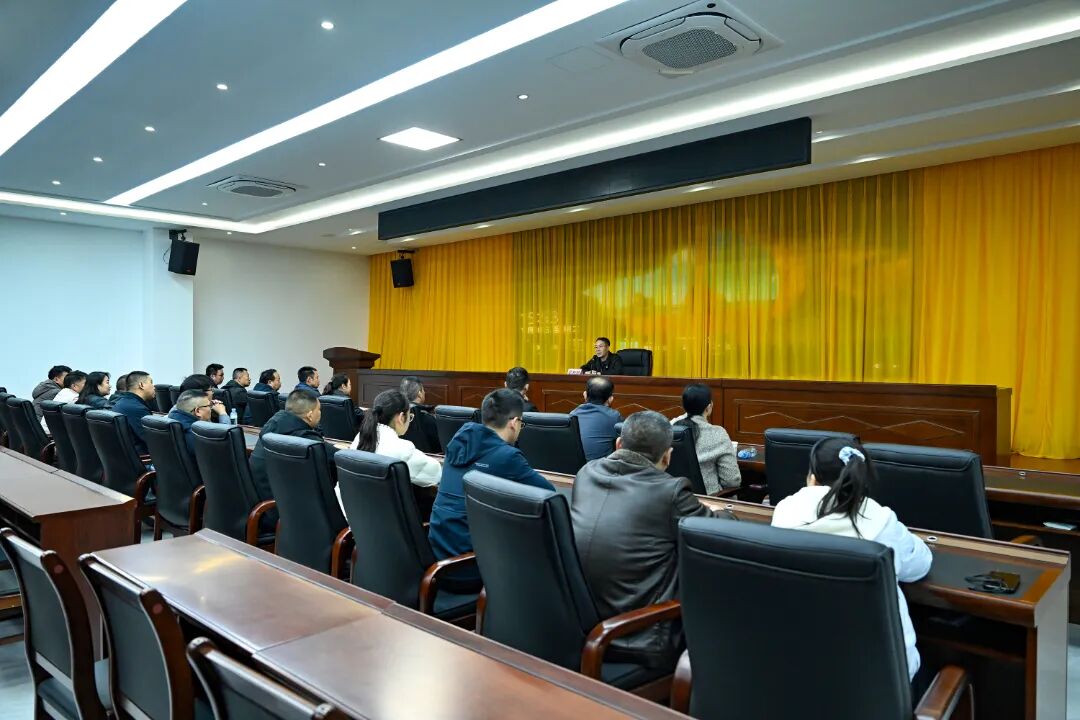 在自治县廉政教育基地报告厅,梁海静对县人大机关党员和干部职工作廉政讲话。