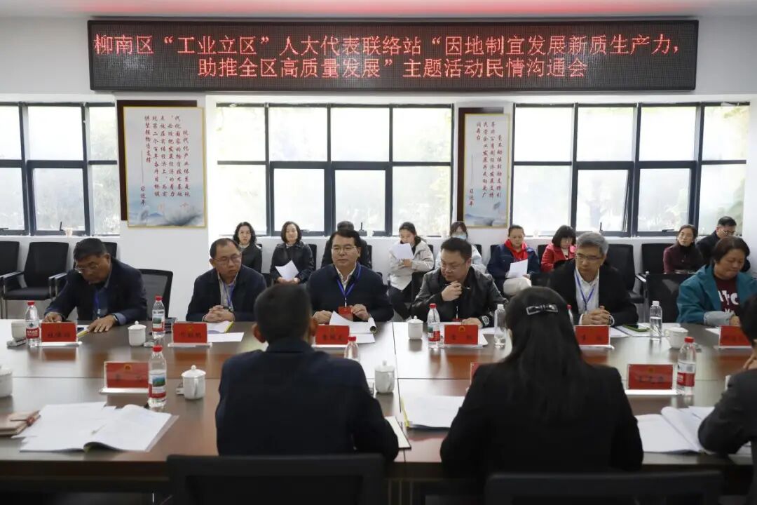 11月21日,柳南区“工业立区”人大代表联络站开展2025年度人大代表“混合编组、多级联动、履职为民”主题活动,民情沟通会现场。