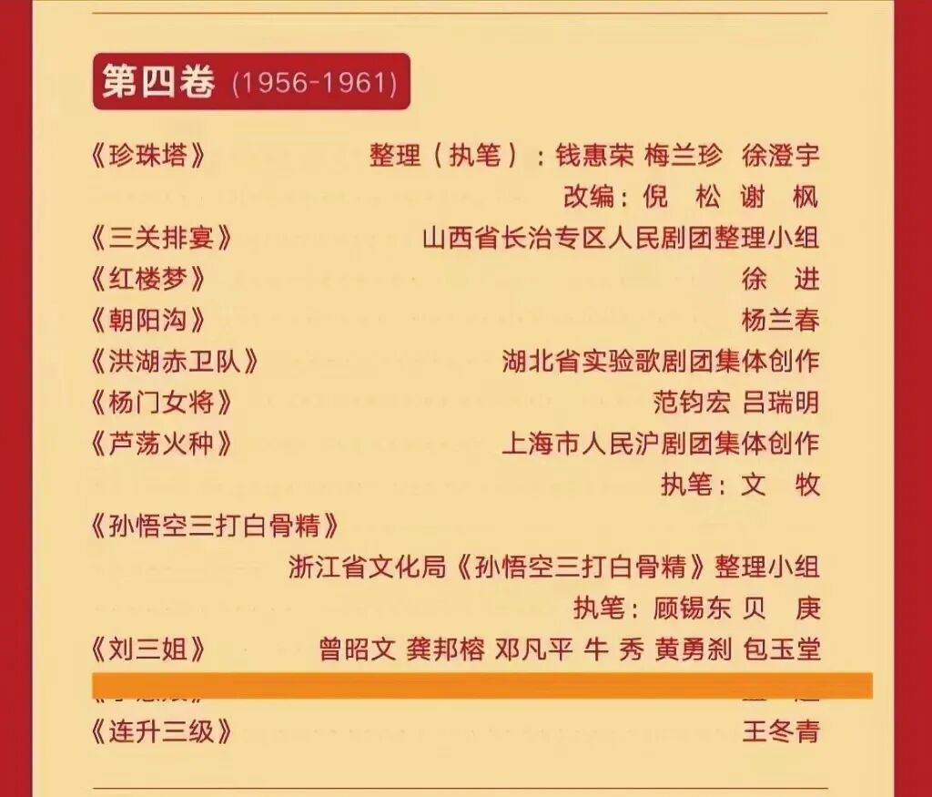 中国戏剧家协会出品的《百年百部优秀剧目典藏》剧目单中《刘三姐》创作者的署名。