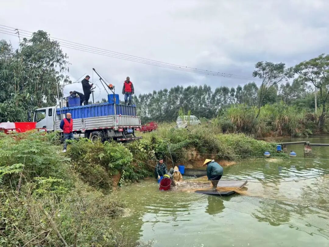 人大代表周顺忠现场了解草鱼代养成品鱼销售的情况