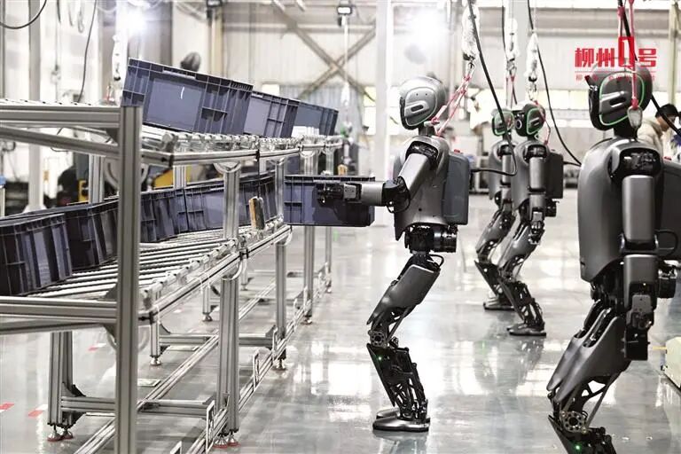 在东风柳汽商用车智能制造工厂内,优必选人形机器人忙着实训。(资料图)