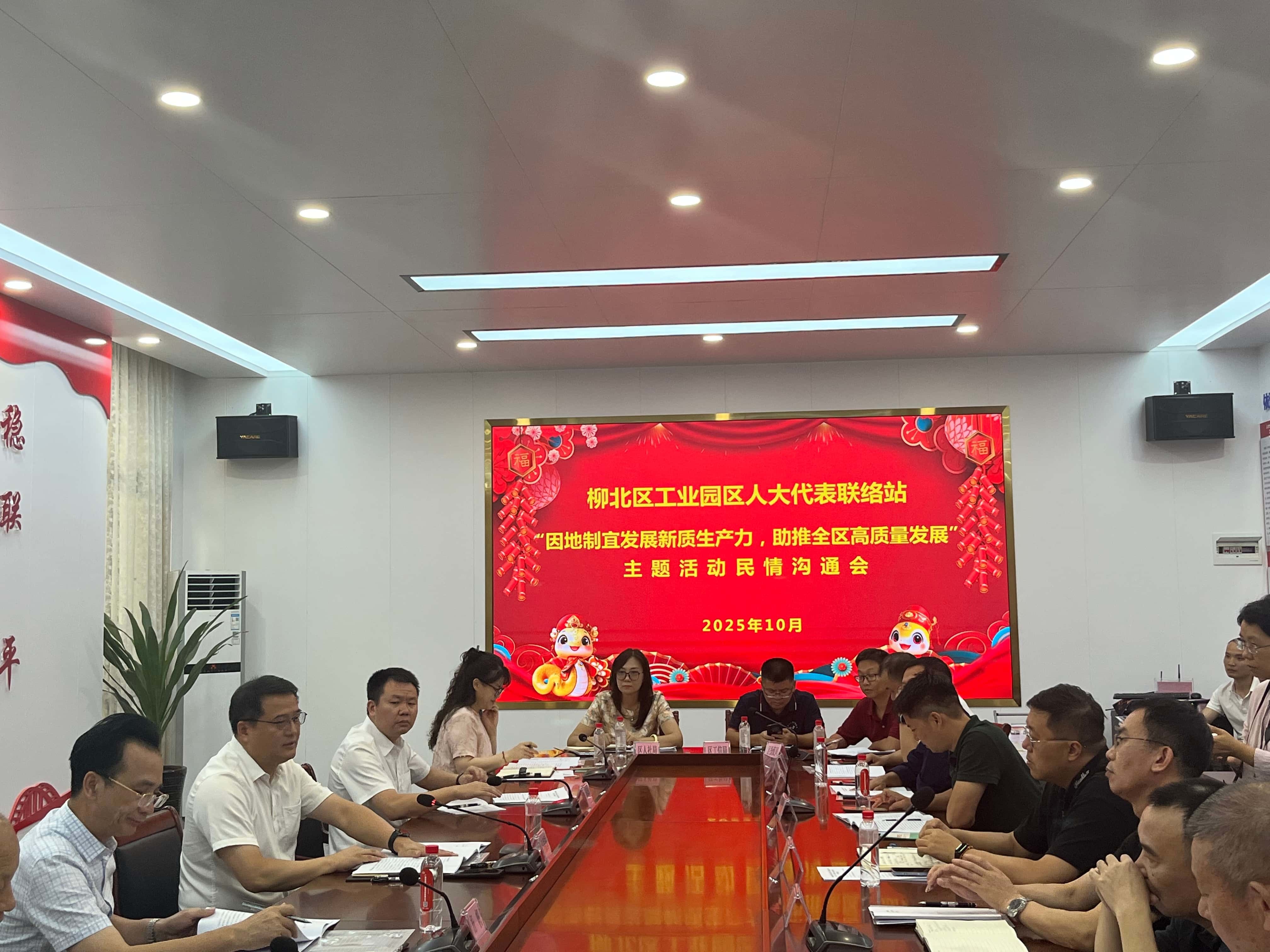 10月11日下午,柳州市人民政府党组成员、副市长汤振国以人大代表身份到柳北区工业园区人大代表联络站,开展2025年度全区人大代表“混合编组、多级联动、履职为民”主题活动,并围绕“因地制宜发展新质生产力,助推全区高质量发展”主题参加了民情沟通会。柳北区委副书记、区长洪进兴,柳北区人大常委会副主任、党组副书记杨帆等11名驻站人大代表及柳北区相关职能部门领导和群众代表参加了此次活动。