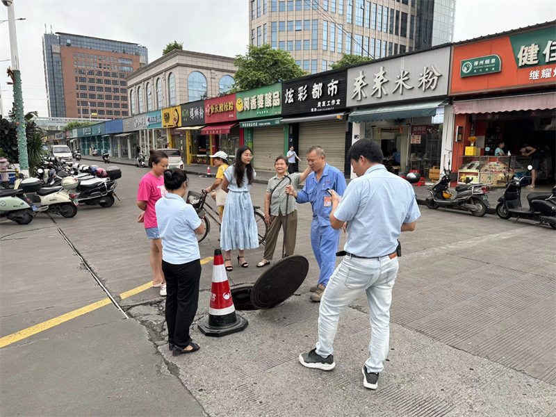 2025年8月6日,雀儿山街道南雀社区党委书记、柳北区人大代表韦英协调大润发路面井盖破损更换问题。