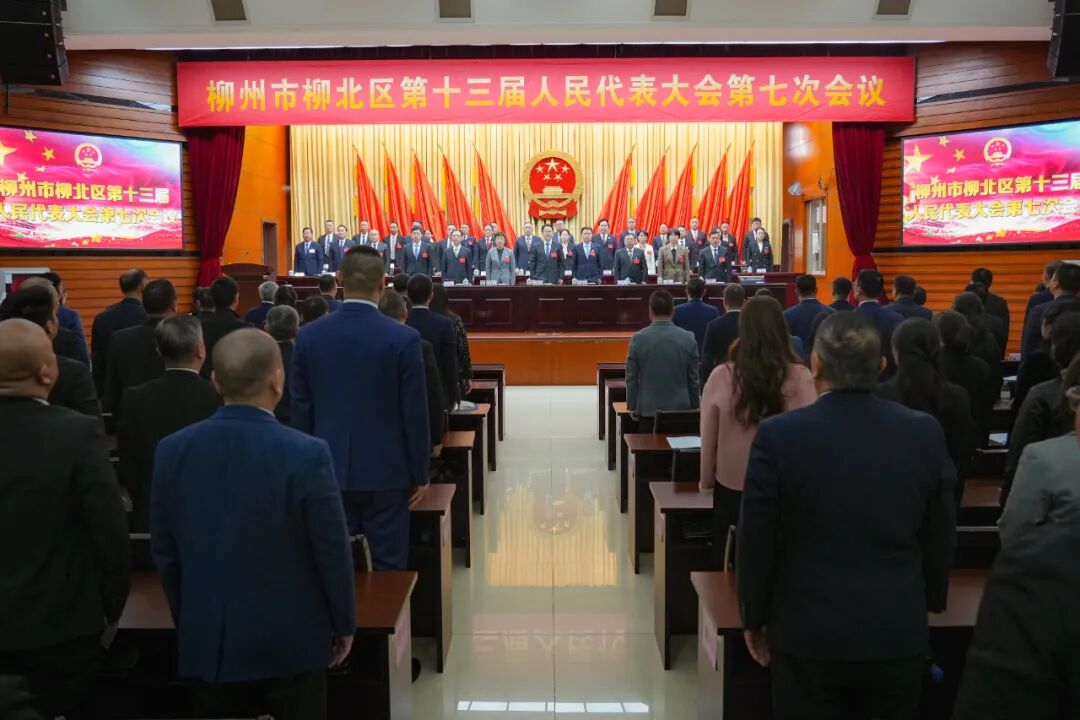 在圆满完成各项议程后,柳州市柳北区第十三届人民代表大会第七次会议在雄壮的国歌声中闭幕。