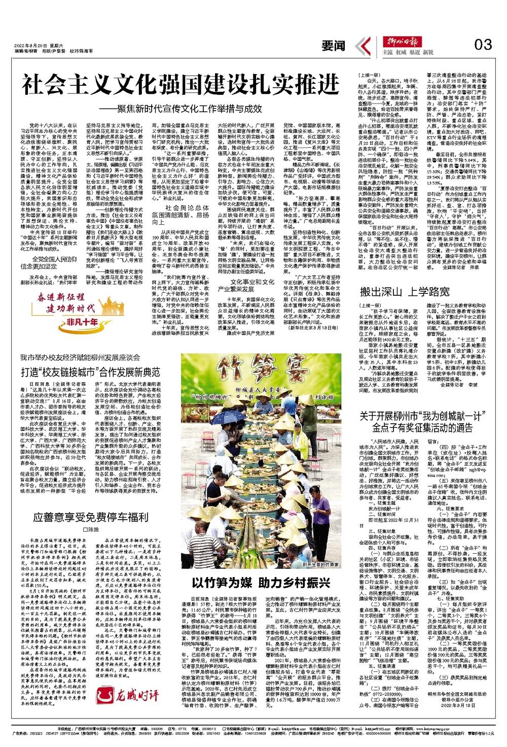 截至8月31日,共有新华社、人民网、中国新闻网、中国科技网、广西日报、柳州日报、南国今报、广西新闻频道、广西视听、柳州市广播电视台、新浪网、网易新闻、腾讯网、抖音、今日头条、柳城人柳城事等60多家主流媒体、有影响力的网络媒体和大咖自媒体平台进行刊发转载,其中新华社页面浏览量高达230万。