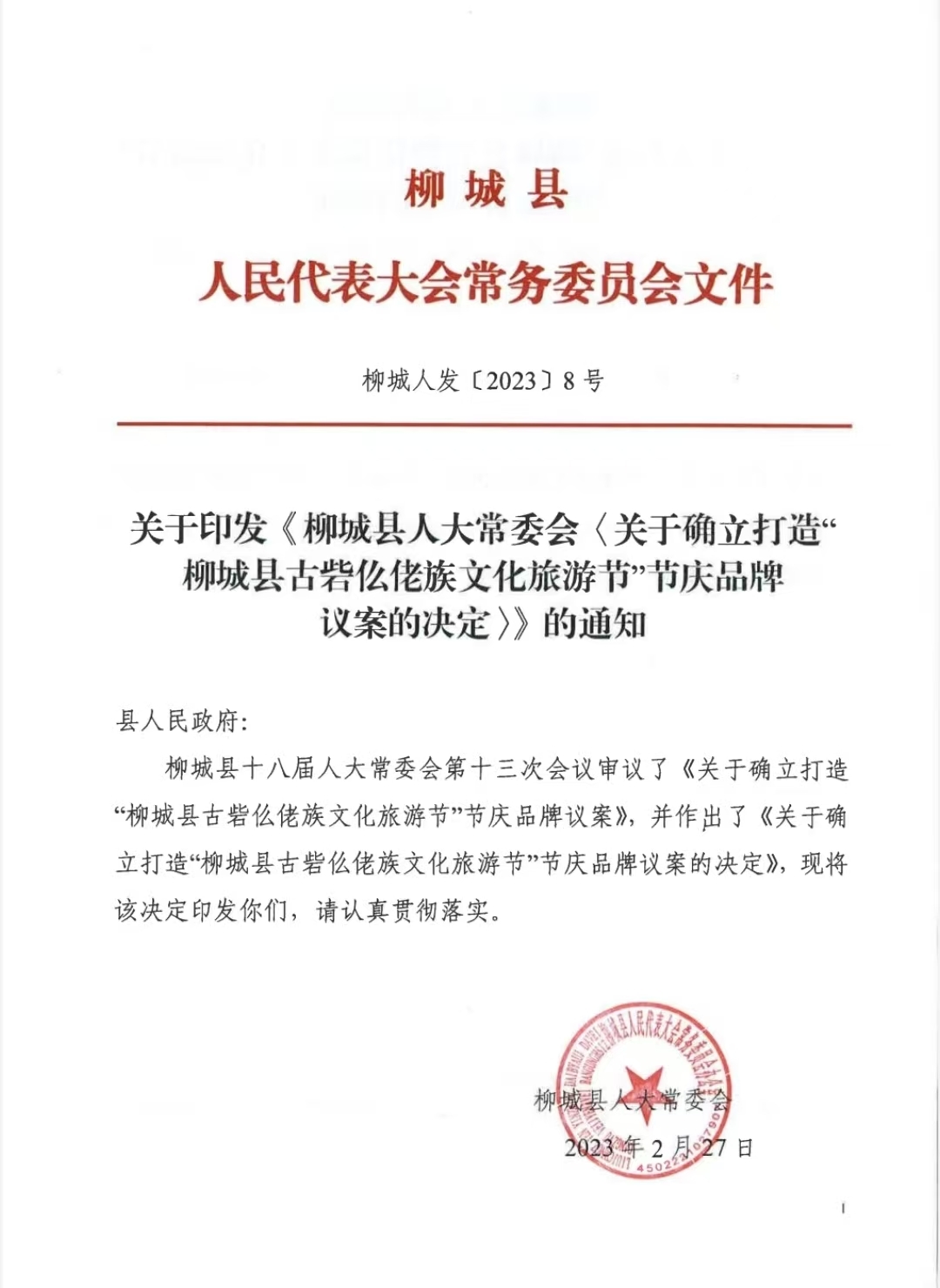 2023年1月,在柳城县第十八届人民代表大会第三次会议上,古砦仫佬族乡代表团提交《关于打造“柳城县古砦仫佬族文化旅游节”节庆品牌的议案》,旨在以节为媒,激活全域旅游,深化“三交”,赋能乡村振兴。