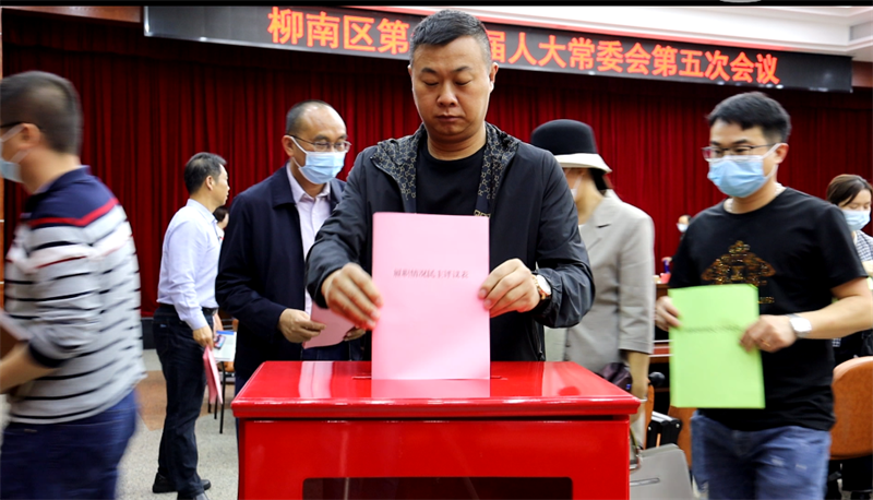 4月15日上午,柳南区第十三届人大常委会召开第五次会议,会议议程共有八项。柳南区人大常委会主任刘庆宁主持会议,副主任黄革文、杨冬平、谢铸、秦文及委员共32人出席会议。柳南区委副书记贾丽,市人大选联工委、柳南区纪委、柳南区委组织部相关负责人到会指导。柳南区人民政府副区长黄立平,柳南区人大常委会党组成员张志生及柳南区监察委、柳南区人民法院、柳南区人民检察院、柳南区人大各委室、部分街道人大工委相关负责人,部分柳南区十三届人大代表列席会议。