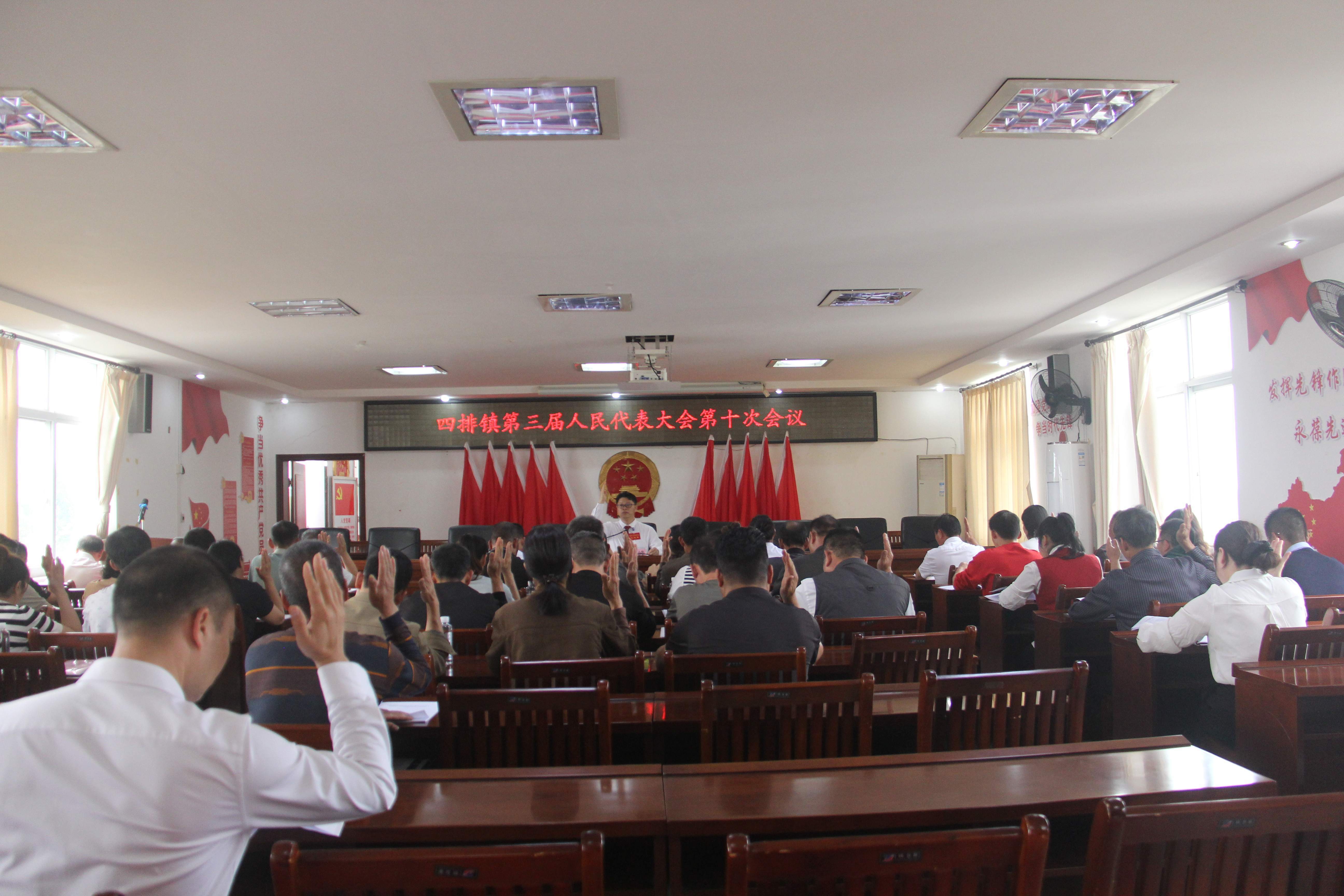 图为四排镇第三届人民代表大会第十次会议在完成各项预定任务后顺利闭幕