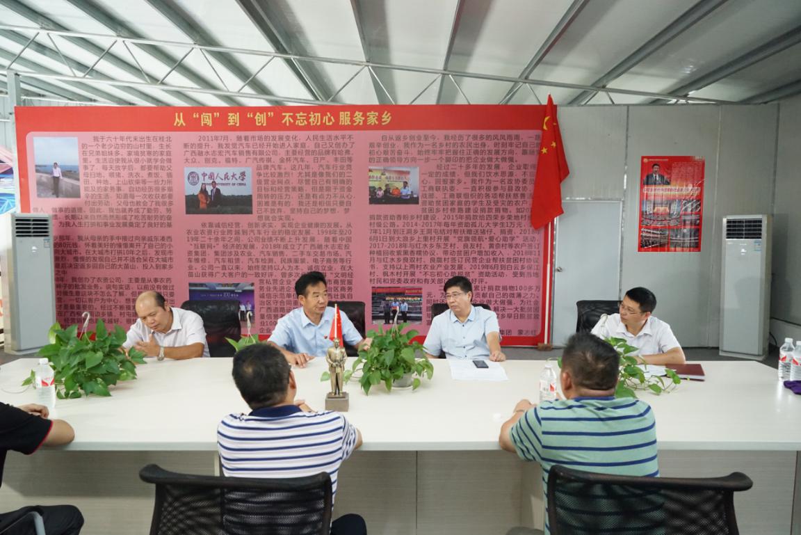 龙庆革一行在广西融水志宏投资集团会议室进行座谈交流。(唐雄/摄)