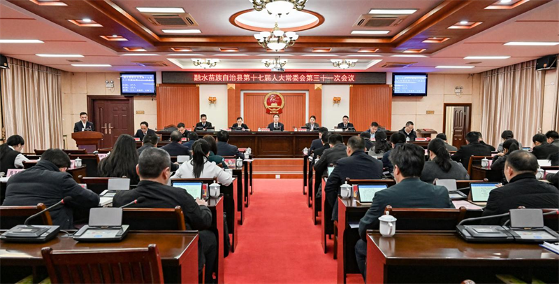 2026年1月16日,融水苗族自治县第十七届人大常委会第三十一次会议在自治县人大常委会四楼常委会会议室召开。自治县人大常委会主任梁海静主持会议,自治县人大常委会副主任秦雪梅、管翠留、俞凯彬、莫先伟及委员共25人出席会议,自治县人民政府副县长劳少昭、自治县监察委员会副主任李绪和、自治县人民法院副院长王铁强、自治县人民检察院副检察长栗鹏飞等列席会议。