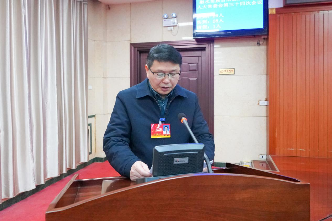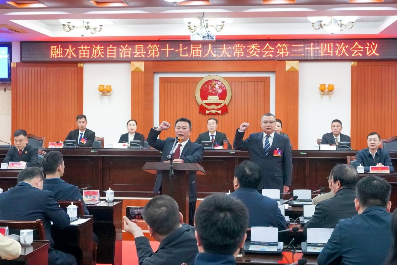 2026年3月27日,融水苗族自治县第十七届人大常委会第三十四次会议在自治县人大常委会四楼常委会会议室召开。自治县人大常委会主任梁海静主持会议,自治县人大常委会副主任秦雪梅、管翠留、俞凯彬、莫先伟及委员共28人出席会议,自治县人民政府副县长欧海平、自治县监察委员会副主任李绪和、自治县人民法院副院长王铁强、自治县人民检察院副检察长栗鹏飞等列席会议。