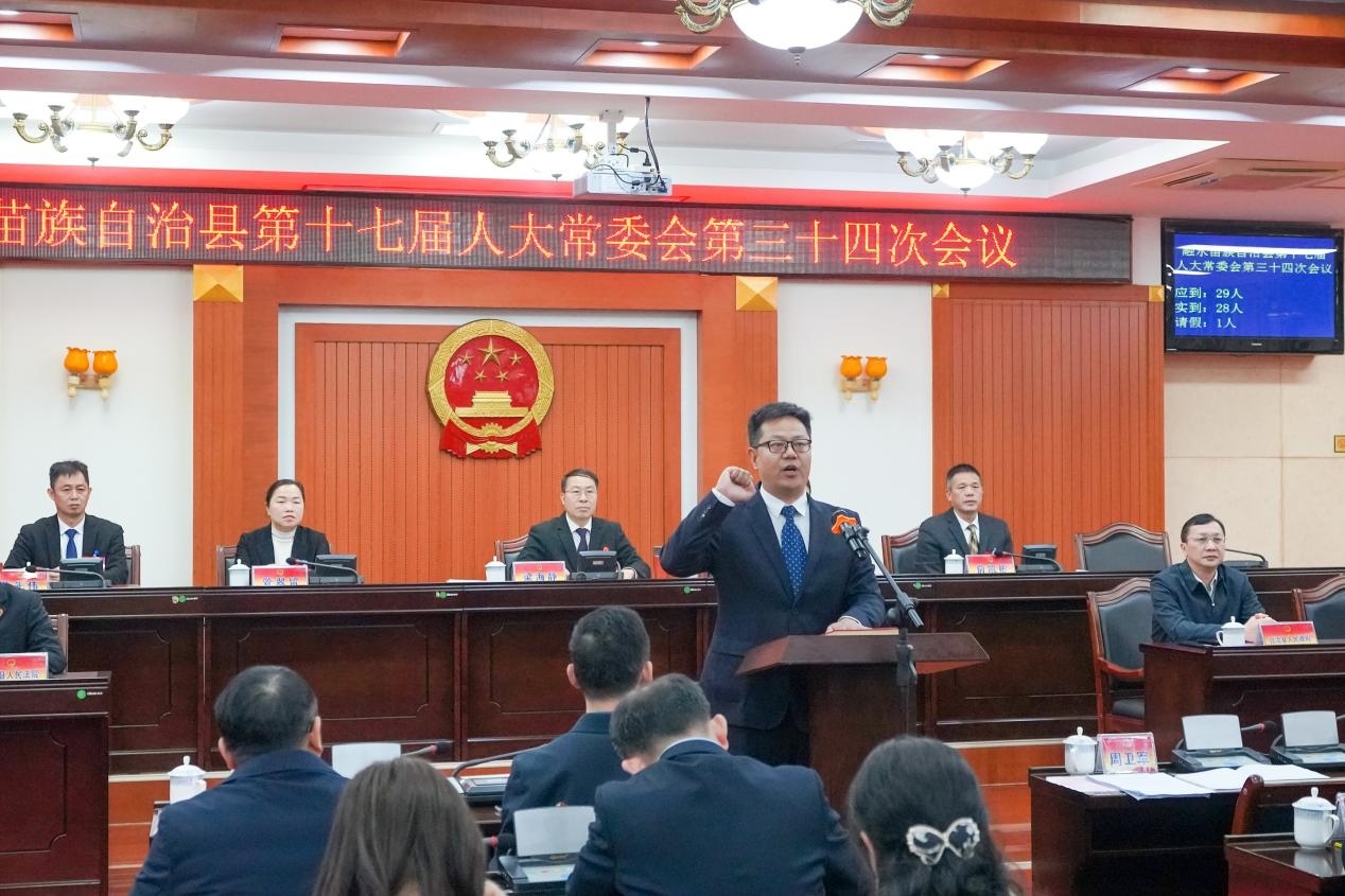 在2026年3月自治县十七届人大六次会议上补选为自治县第十七届人大常委会委员并分别补选为自治县第十七届人民代表大会监察和司法委员会主任委员的周卫军、财政经济委员会主任委员的韦冲,安排在本次人大常委会会议上进行宪法宣誓。
