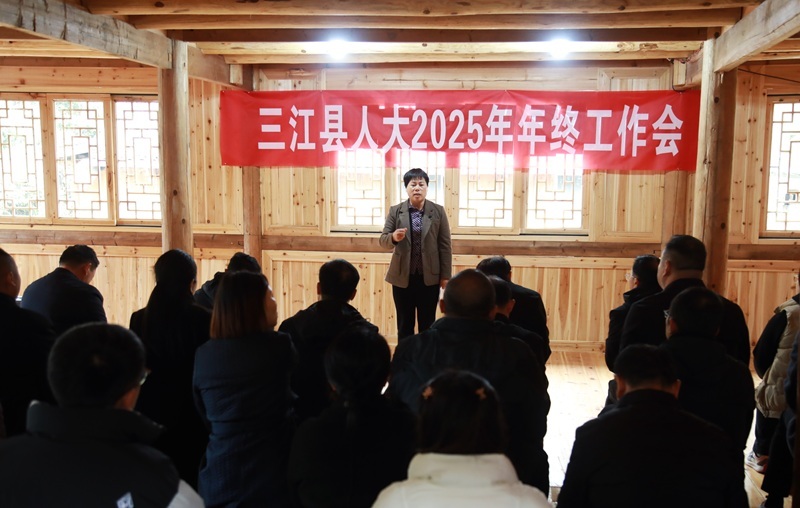 12月5日,三江侗族自治县人大常委会2025年年终工作会在林溪镇高友村召开,会议总结2025年度工作,并部署2026年重点任务。县人大常委会主任石祖芝参加会议并讲话,县人大常委会副主任梁德军、梁永生、李前美、邱阳军参加会议。