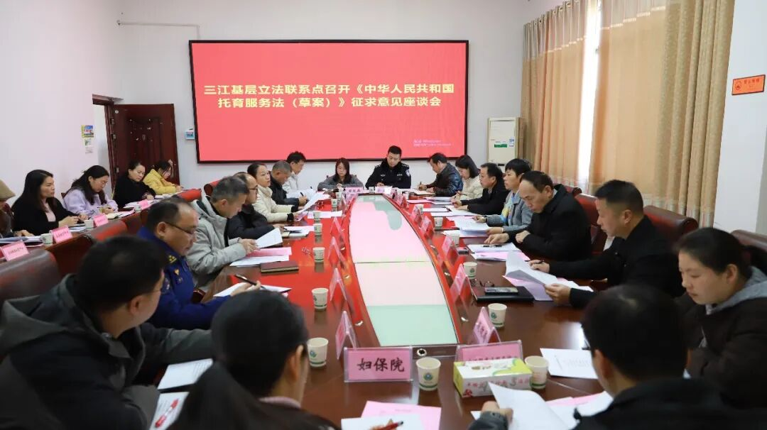 1月13日,全国人大常委会法工委三江侗族自治县基层立法联系点在县卫生健康局召开《中华人民共和国托育服务法(草案)》(以下简称《草案》)征求意见座谈会。县人大常委会主任石祖芝,副主任梁永生、邱阳军参加会议。